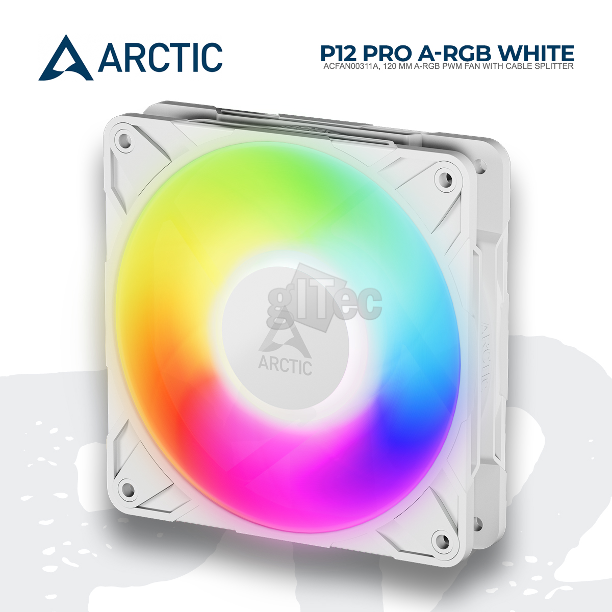 ARCITC P12 Pro A-RGB White ACFAN00311A, 120 mm A-RGB PWM Fan with Cable Splitter, Fan Speed 600–3000 rpm, PWM controlled, Airflow 77 cfm | 131 m³/h, Static Pressure 6.9 mmH2O, Cable Length 400 mm + 80 mm Daisy-Chain Cable, Connector 4-Pin Fan Plug + 4-Pin Socket.